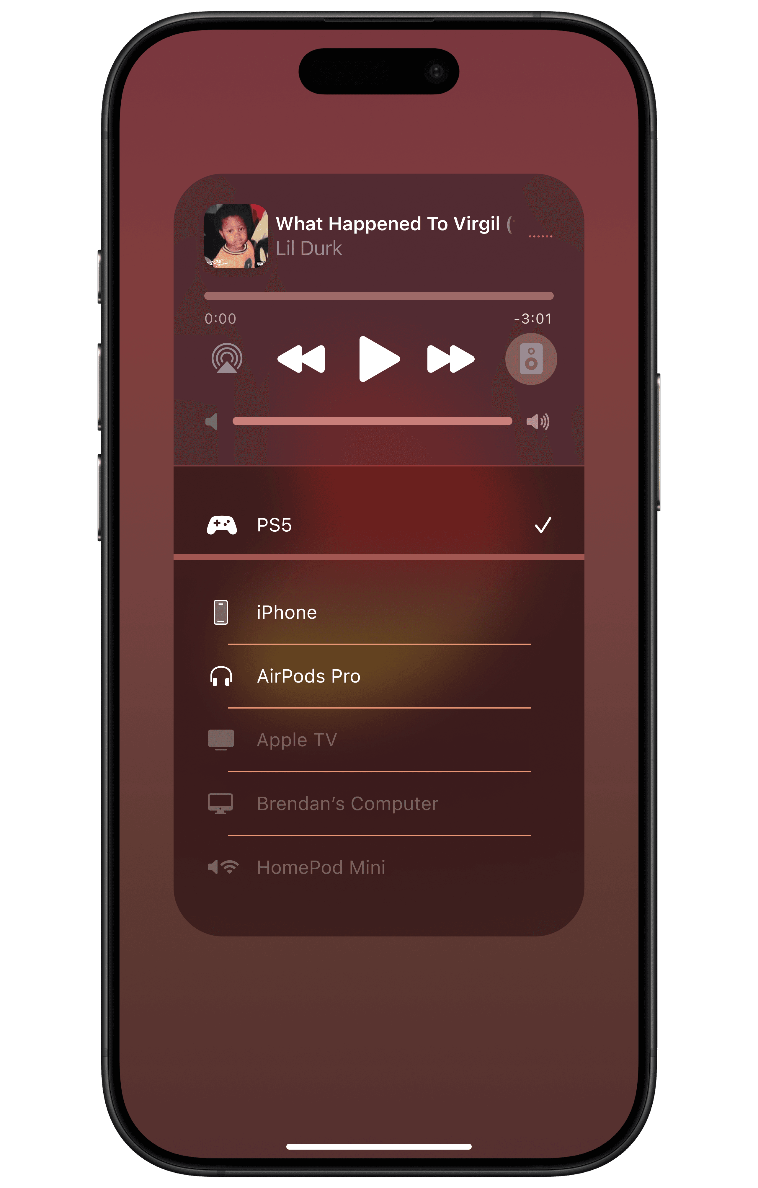 This usability test evaluated how easily users could identify, switch, and control Apple Music playback across multiple devices. This included tasks such as viewing the current playback device, switching playback from iPhone to PS5, and remotely pausing playback from the iPhone while gaming.